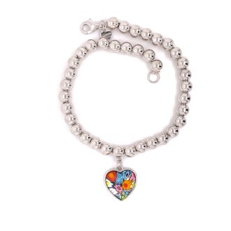 Heart Shape Millefiori Murano Glass Silver Bead Bracelet.