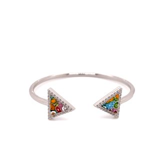 Cuff Bracelet Murano Multi Colored MIllefiori Triangular Cut Glass With CZ Accents.