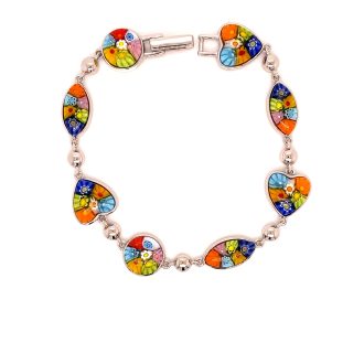 Murano Millefiori Heart/Marquise Bezel Set Straight Line Bracelet