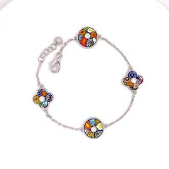 Murano Millefiori Multi Colored Clover and Round Charm Bracelet