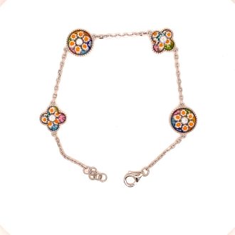 Murano Millefiori Multi Colored Heart And Cubic Zirconia Bracelet.
