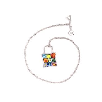 Small Murano Millefiori Glass Lock And Key Bracelet.
