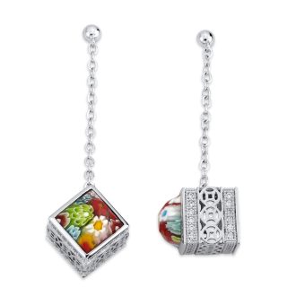Murano Millefiori Cushion Cut Glass Box Drop Earrings