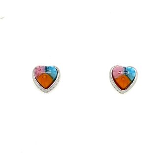 Murano Millefiori Heart Shape Glass Stud Earrings.