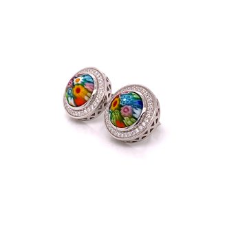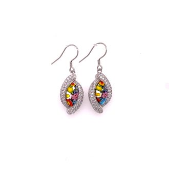Murano Millefiori Marquise Cut Glass And Semi Halo CZ Cluster Earrings.