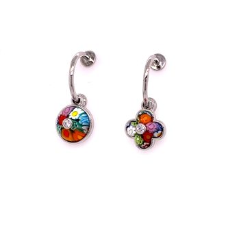 Murano Millefiori Round And Clover Cut Glass Charm, Semi Hoop Earrings.