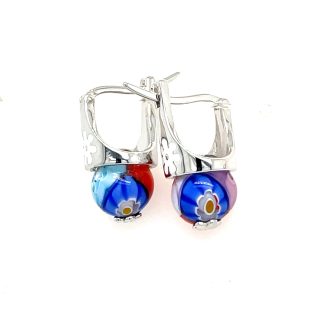 Murano Millefiori Round Bead Sterling Silver Ear Pendants.