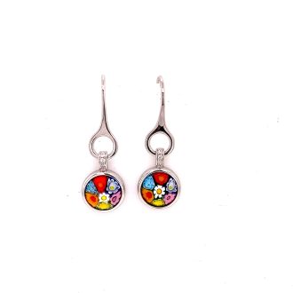 Murano Millefiori Round Glass French Wire Drop Earrings.
