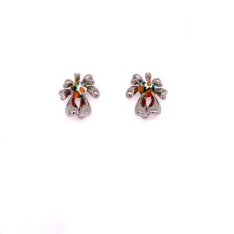 Murano Millefiori Round Multi Colored Glass, Lily Stud Earrings.