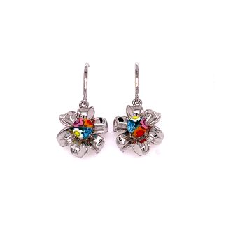 Murano Millefiori Round Multi Color Glass And Clover Drop Earrings