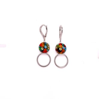 Murano Millefiori Round Glass, Circular Drop Orbit Earrings.