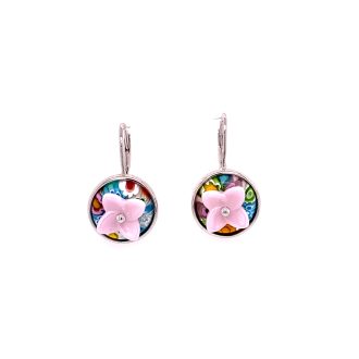 Murano Millefiori Round Glass Daisy Drop Earrings.