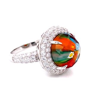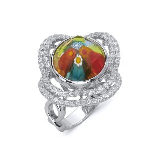 Cushion Cut Millefiori Murano Glass Faceted Solitaire Ring. Alan K.