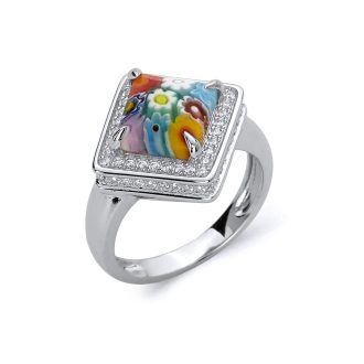 Hugs And Kisses Sterling Silver Ring With Murano Millefiori Multi Colored Glass.