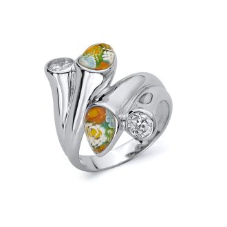 Millefiori Crossing Pears Ring With CZ Accents