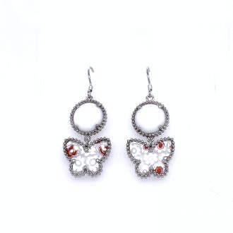 Millefiori Multi Colored Round Murano Glass and White Agate Gold Plated Sterling Silver Drop Ear Pendants.