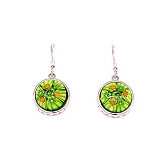 Murano Millefiori Multicolored Glass And Cubic Zirconia Ear Pendants.