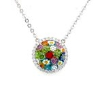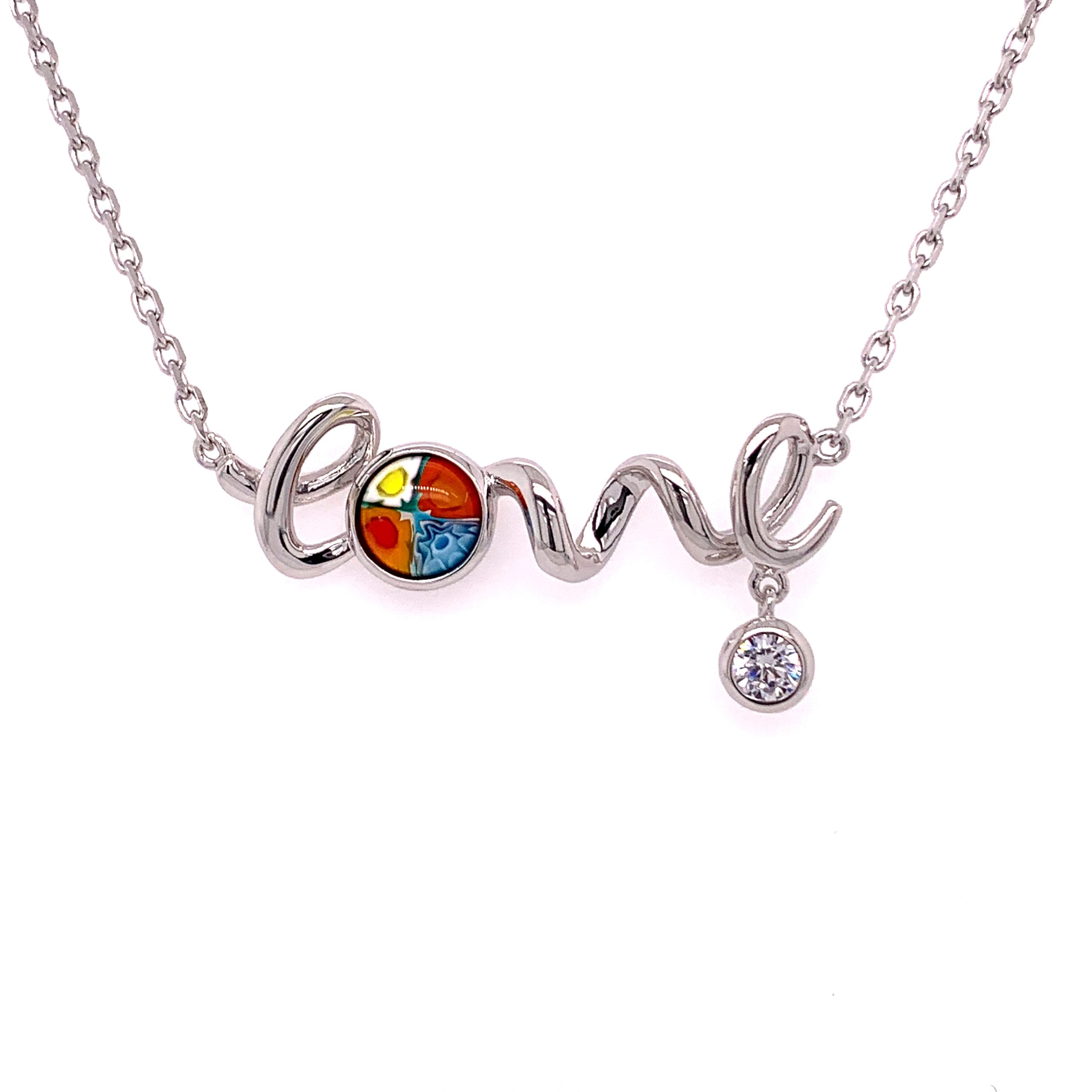 NecklacesMillefiori Multicolor Bezzel Set Cubic Zirconia Love Necklace CZ Accent Love Inscribed Necklace