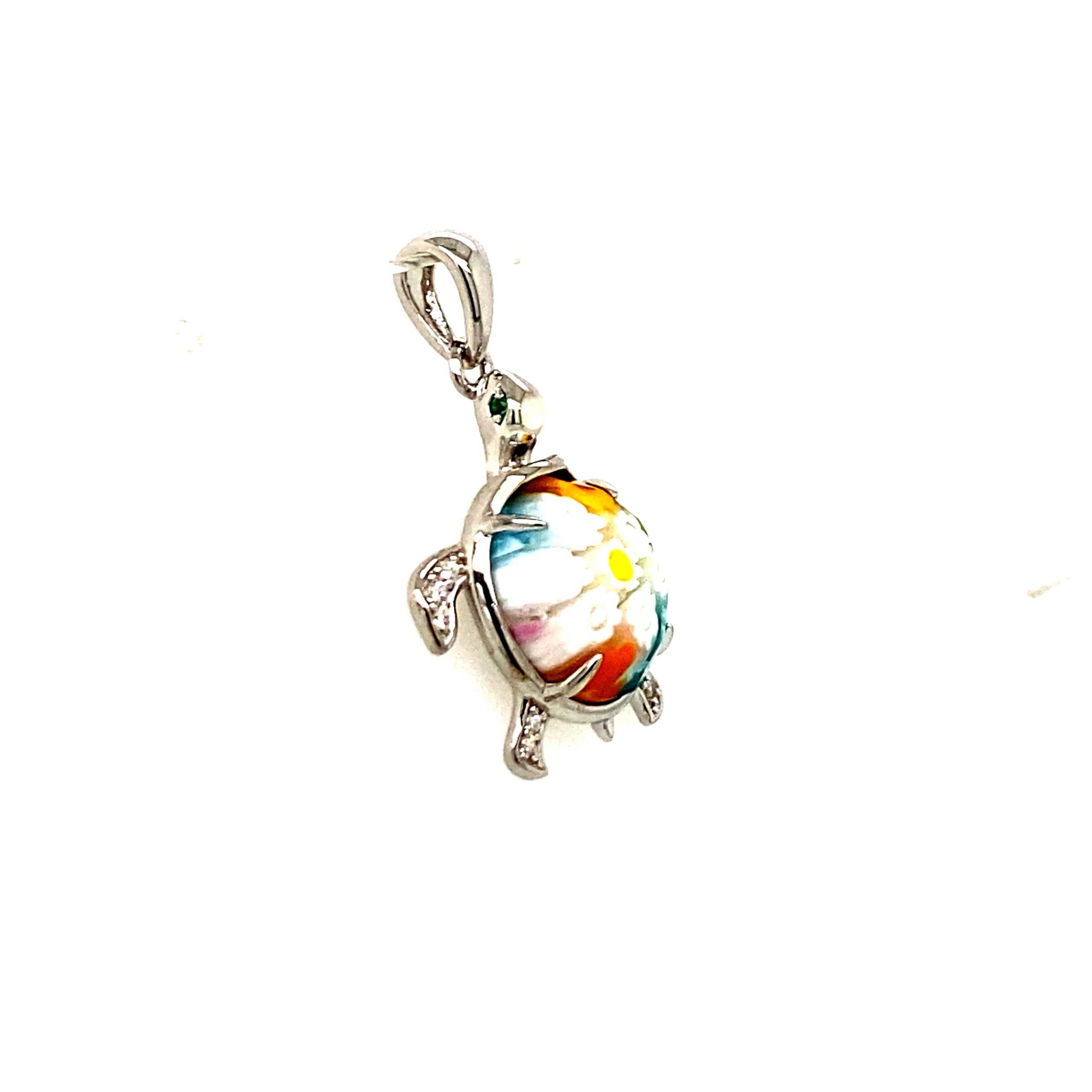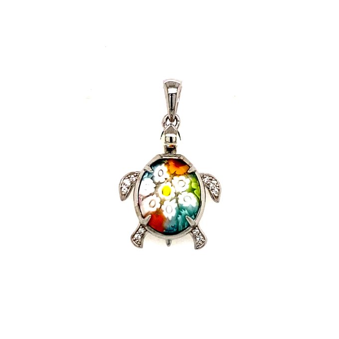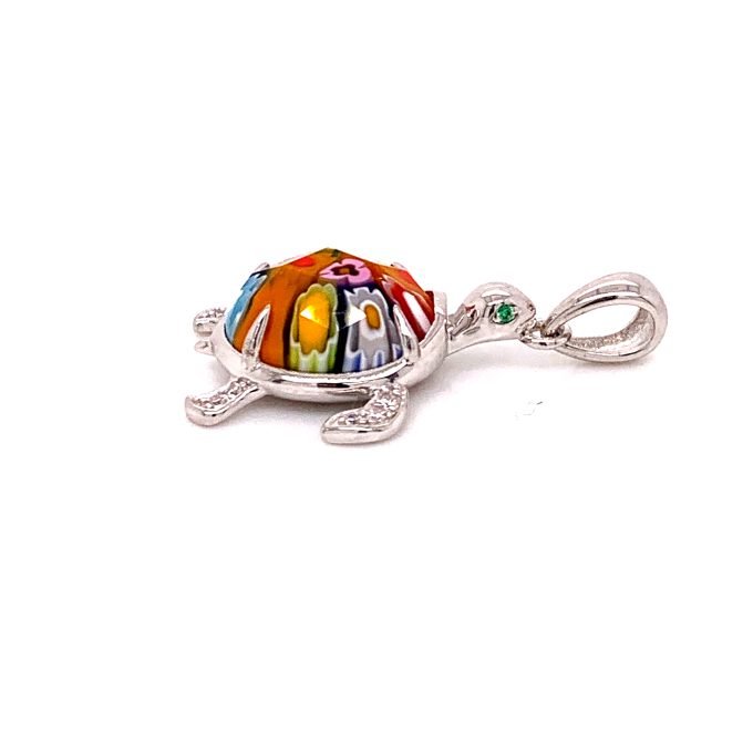 Marine Turtle Pendant With Oval Cut Murano Millefiori Glass And Cubic Zirconia.