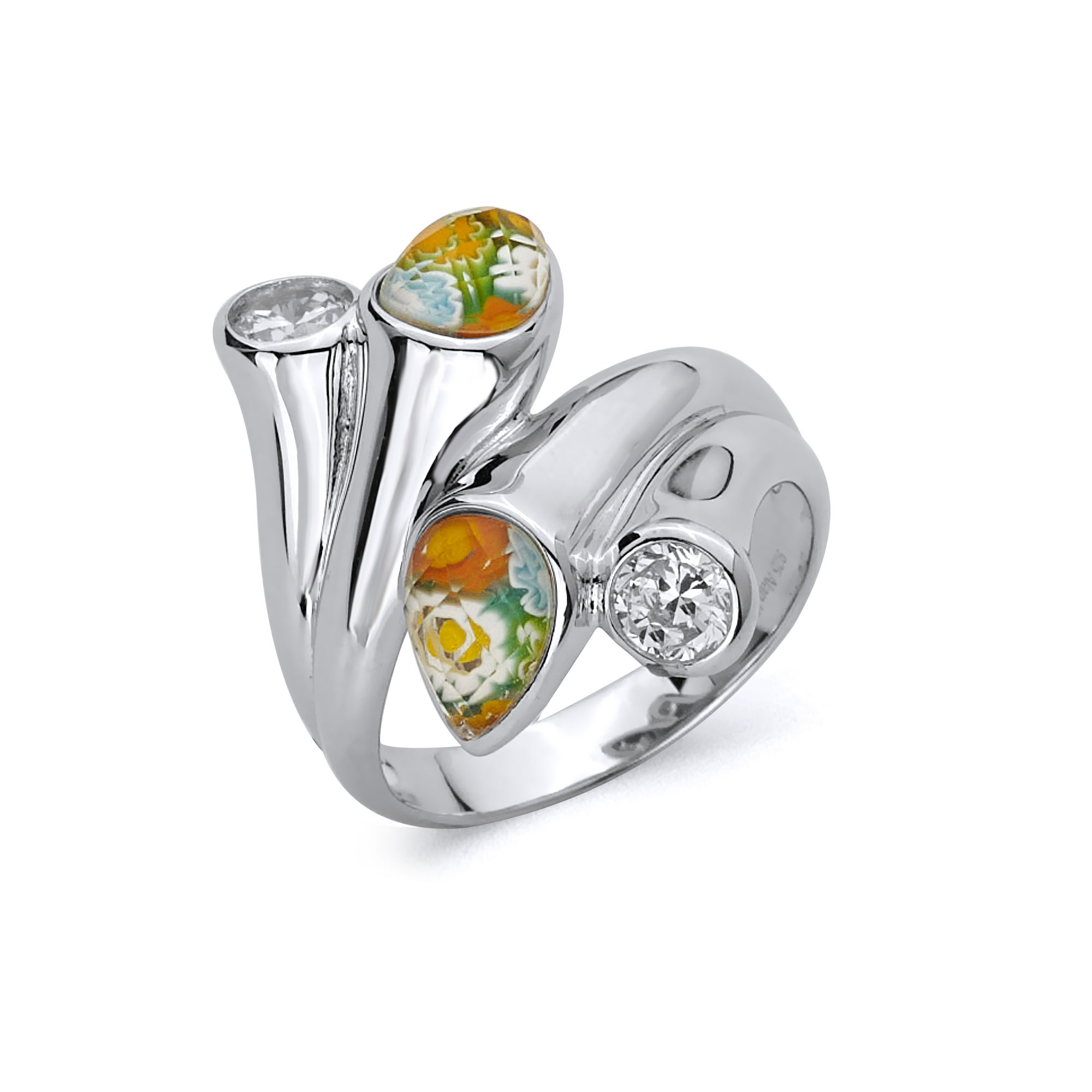 RingsMillefiori Murano Glass Cubic Zirconia Accents Millefiori Crossing Pears Ring Pear Shape Murano Glass Ring