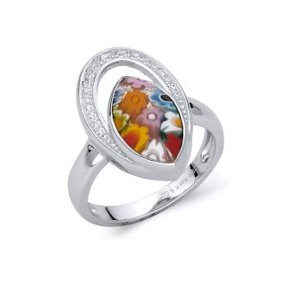 Hand Crafted, Sterling Silver 925, Split Shank Mount. Round Multi Color Millefiori Murano Glass. Micro Pave Set Cubic Zirconia Accents.