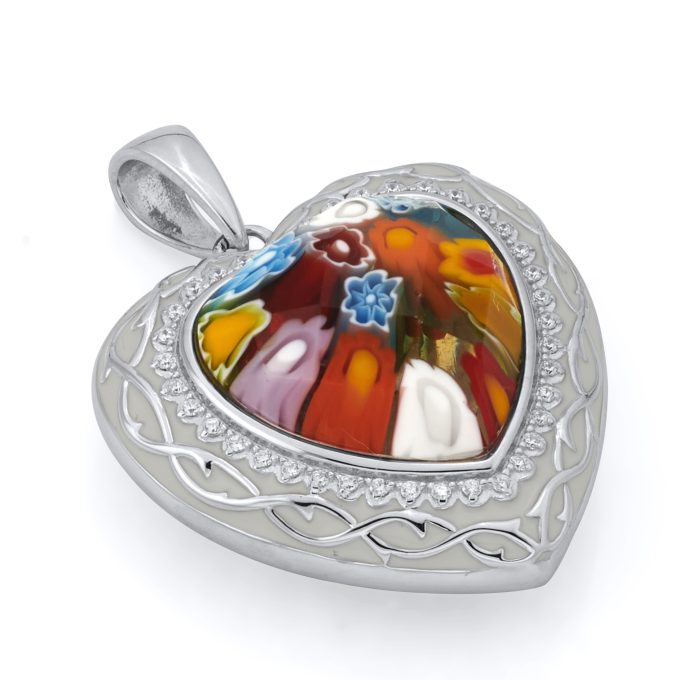 PendantsHeart Shaped Murano Glass CZ & Enamel Accents Heart Pendant