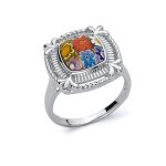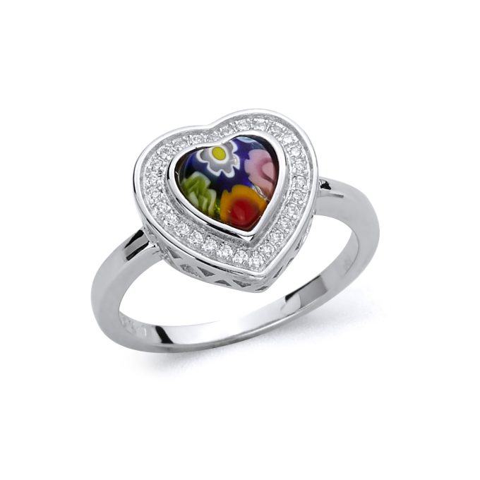 Millefiori Multicolor Cubic Zirconia Halo Millefiori Heart Ring Heart Shape Murano Glass Ring