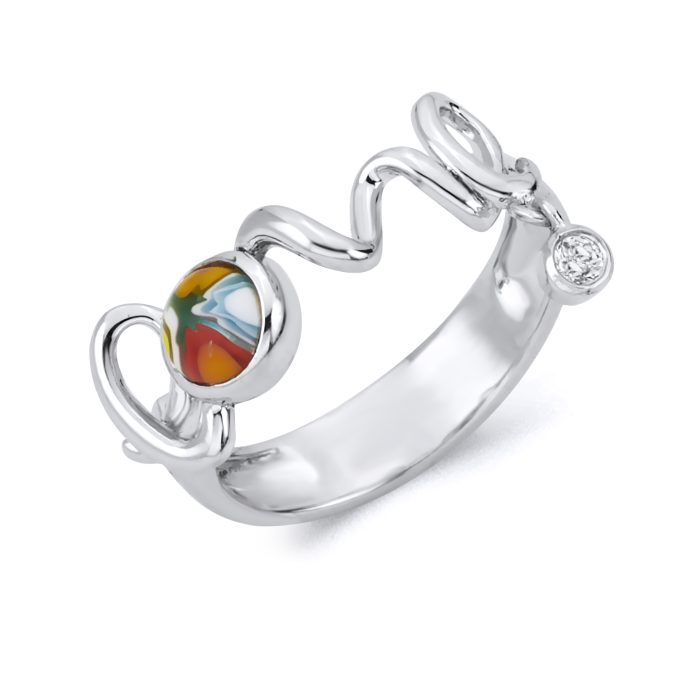 RingsMillefiori Multicolor Love Inscribrd Love Inscribed, Round Murano Round Millefiori Murano Glass Ring