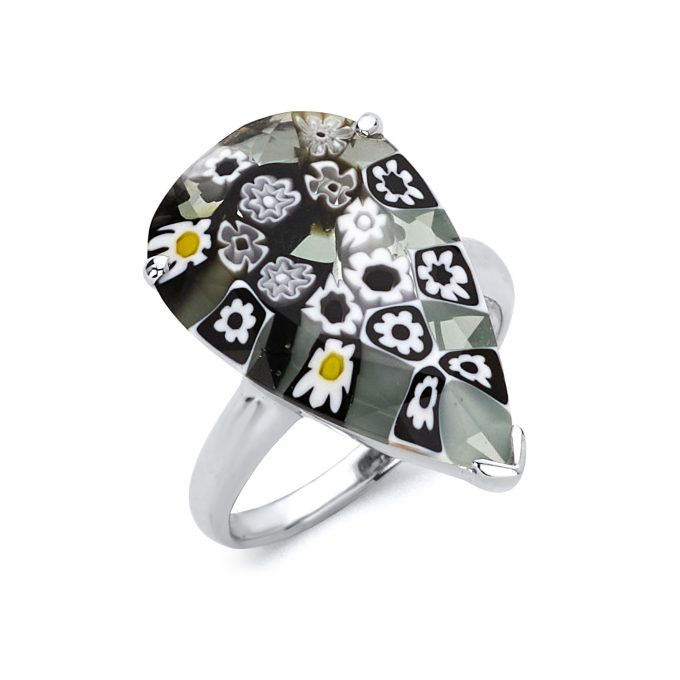Millefiori Multicolor Solitaire Pear Shape Murano Glass Ring
