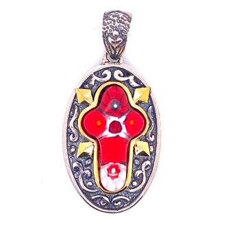 Hand Crafted, Sterling Silver, 925 Mount. Bezel Set, Heart Shaped, Millefiori Murano Glass.