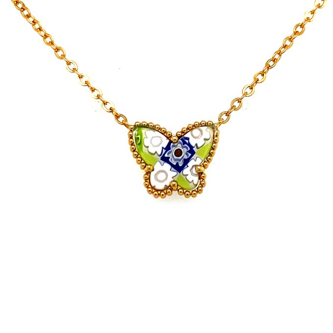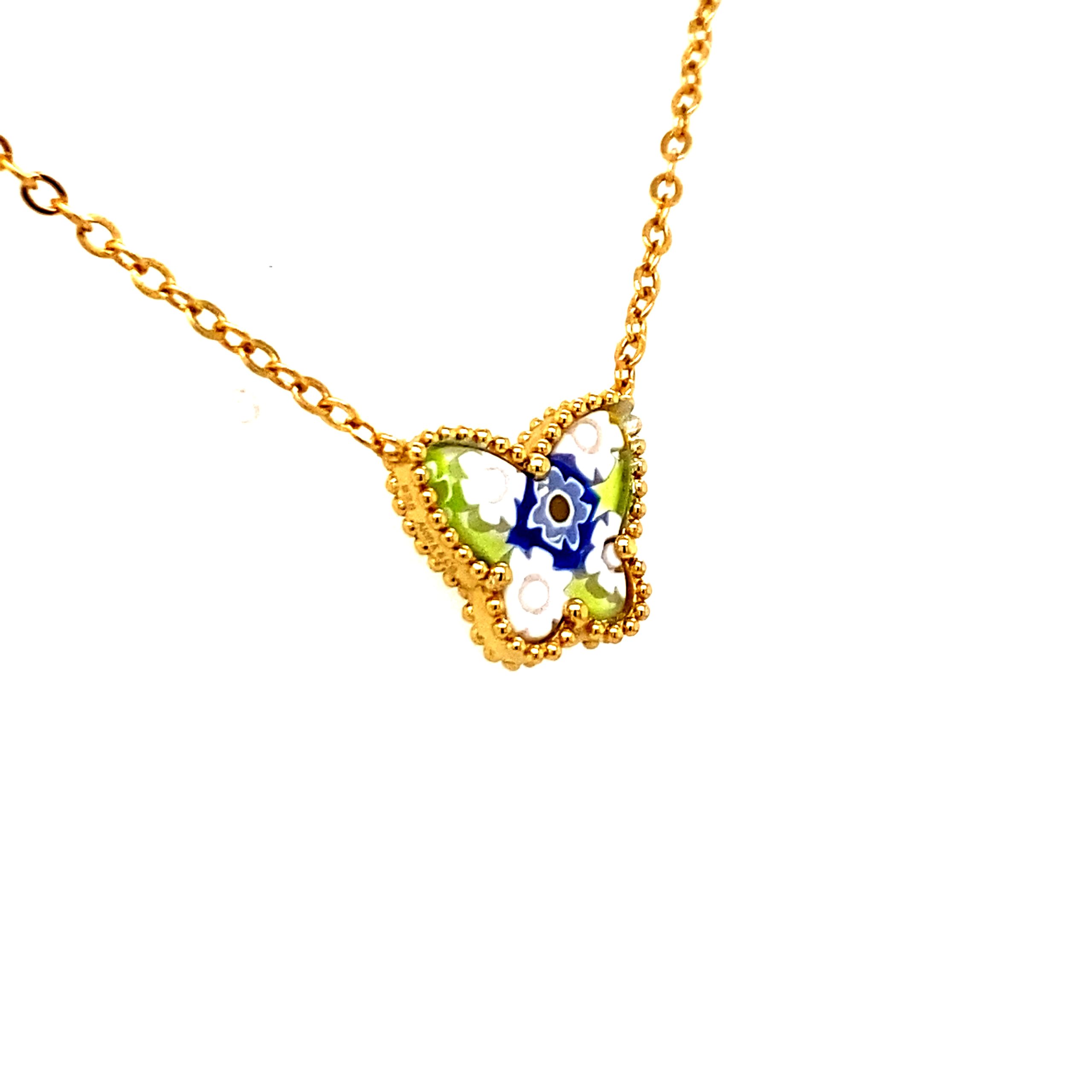 Millefiori Multicolor Gold Plated Butterfly Necklace