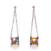 EarringsDangling Drop Chain Square Millefiori Murano Glass Earrings