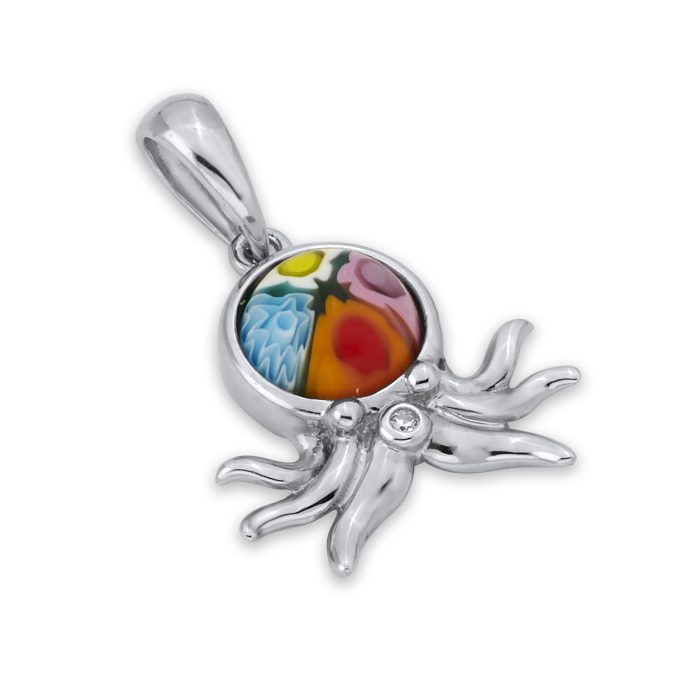 Millefiori Multicolor Bezel Set CZ Accent Multi-Color Millefiori Octopus Pendant