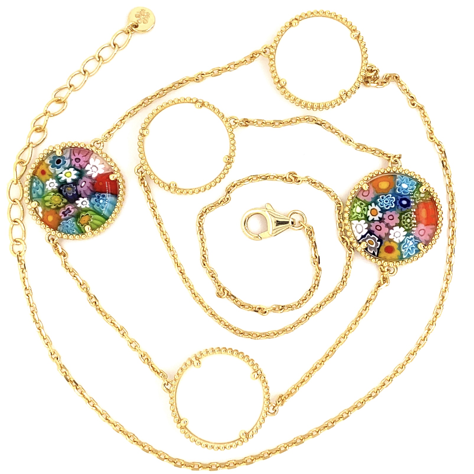 NecklacesMillefiori Multicolor By The Yard Multi Color & White Onyx GP 26 Inch Round Murano Glass Necklace