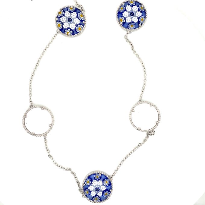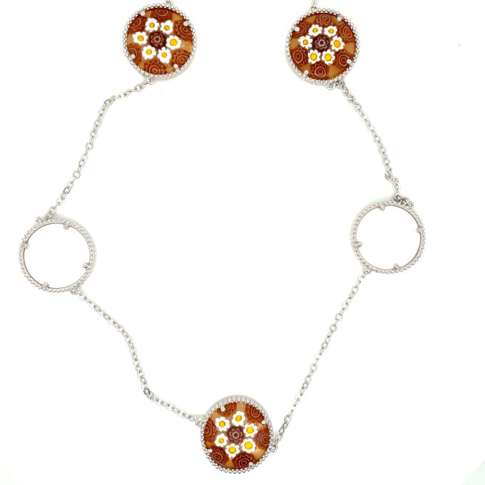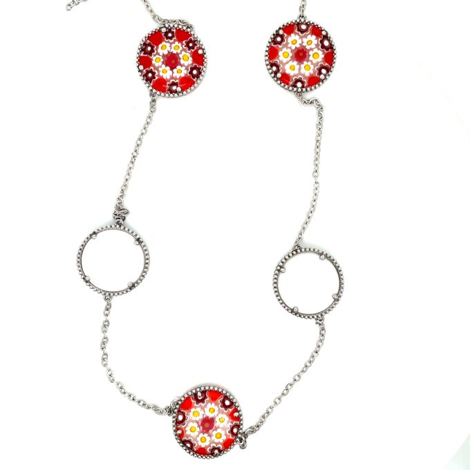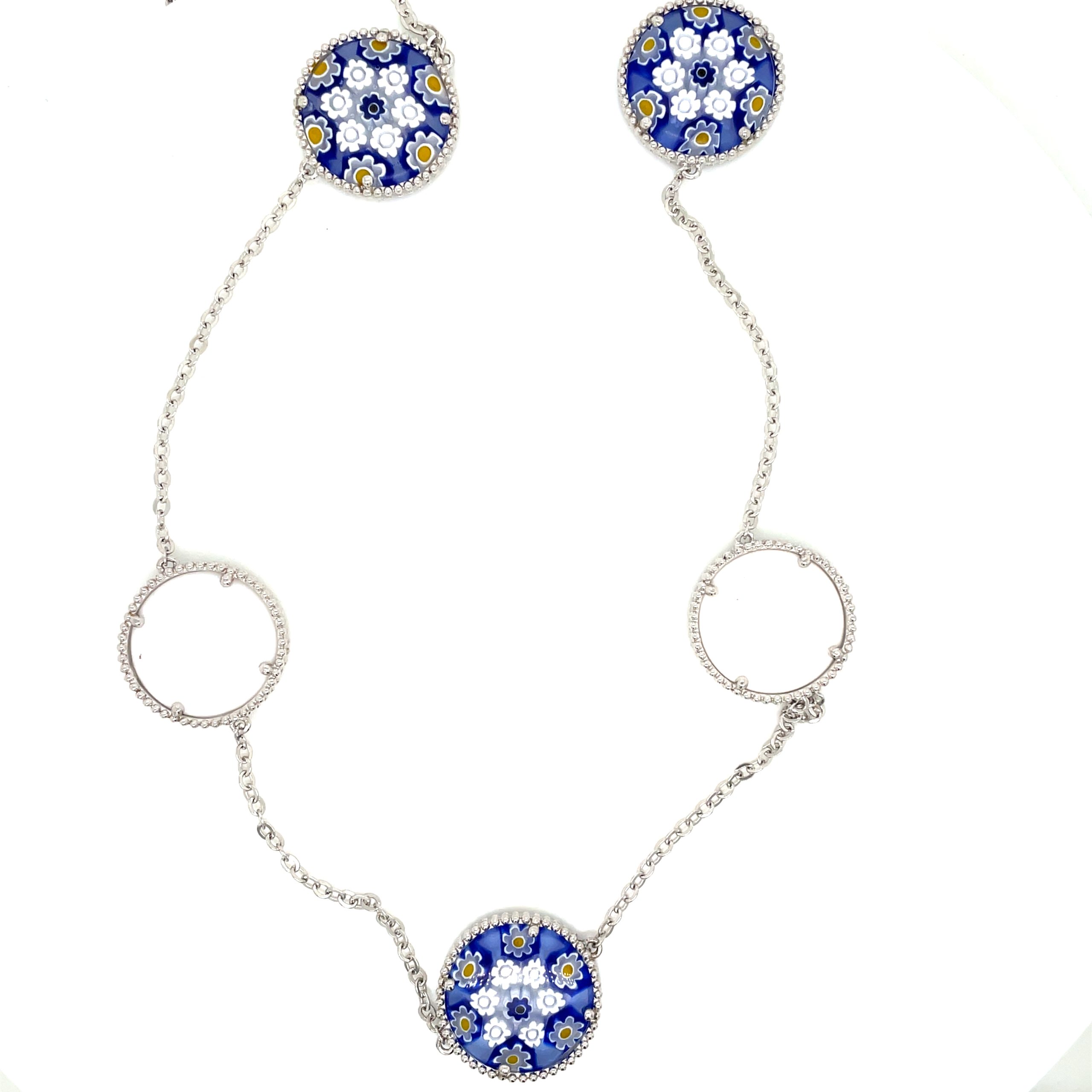 Millefiori Multi Colored Murano Glass Square Glass Necklace Cubic Zirconia Halo