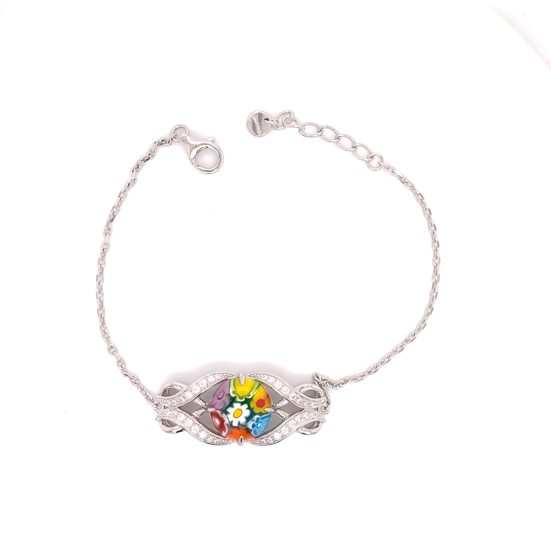 BraceletsMillefiori Multicolor Micro Pave CZ Accents Vintage Revival Murano Round Glass Bracelets