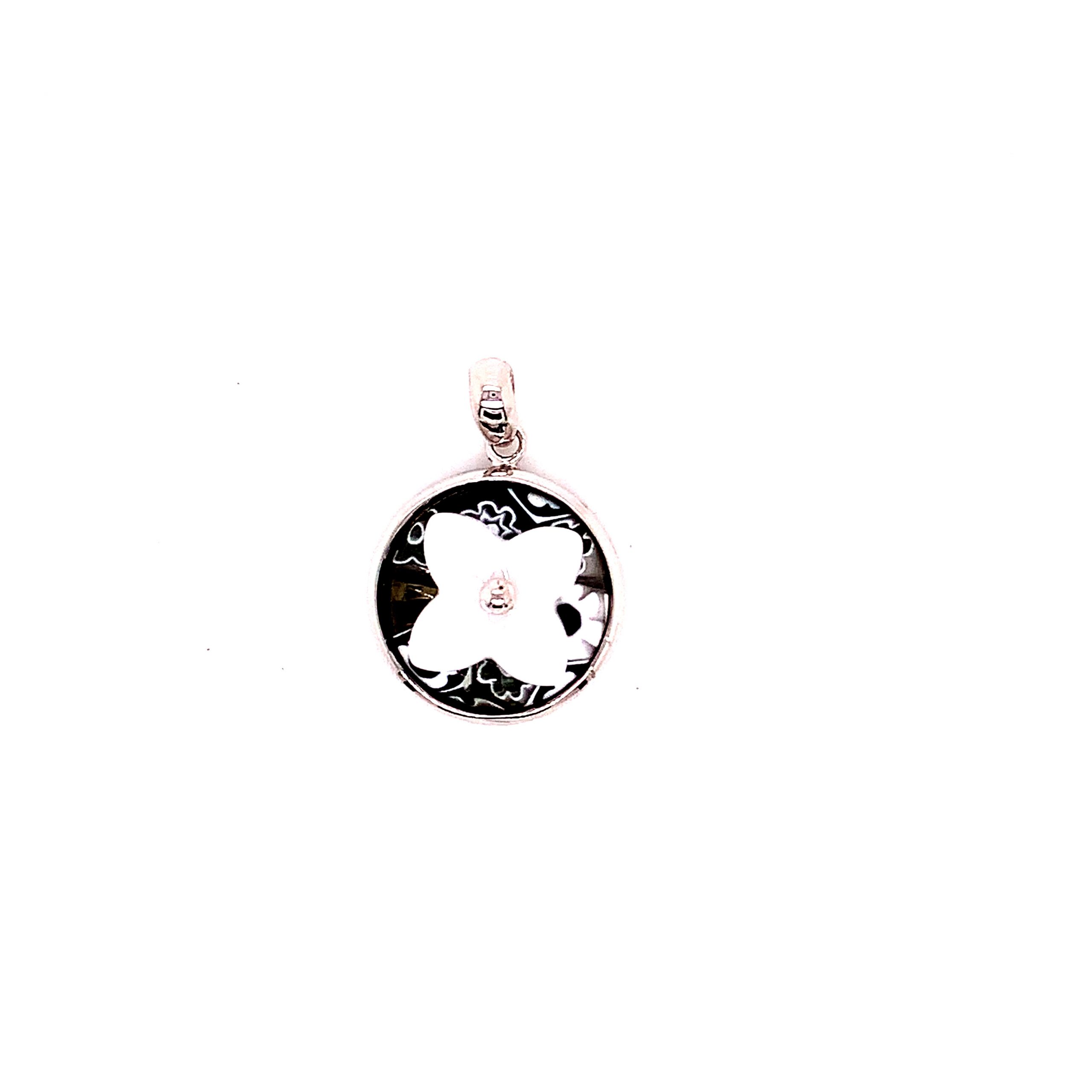 Hand Crafted, Sterling Silver 925 Mounts. Bezel Set, Round Murano Millefiori Multi Colored Glass. Black And White Onyx Lilly Accents.