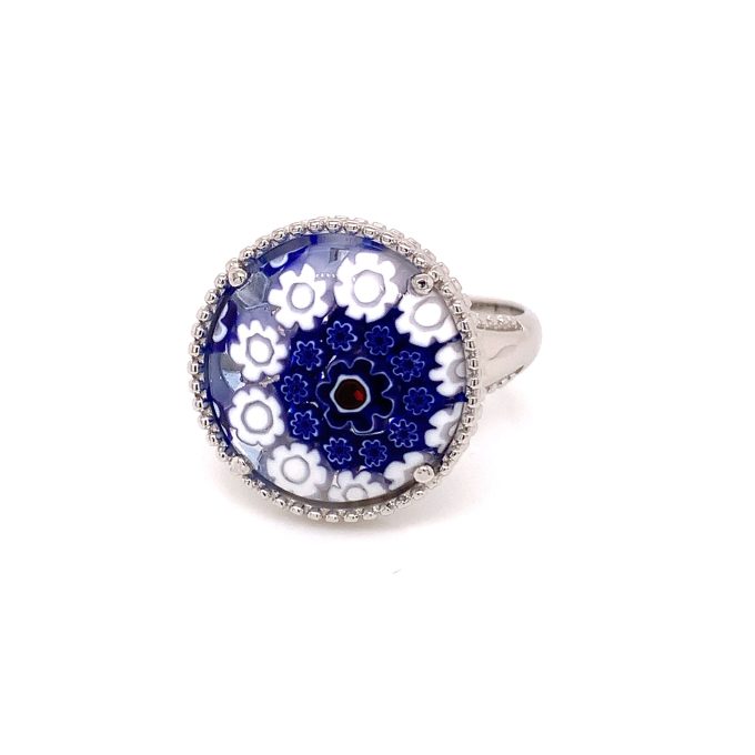 Murano Millefiori Blue Colored Round Glass Ring By Alan K