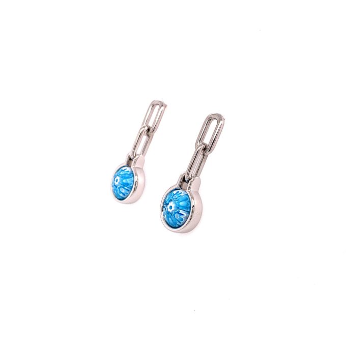 Murano Millefiori Blue Round Glass, Paper Clip, Drop Earrings.