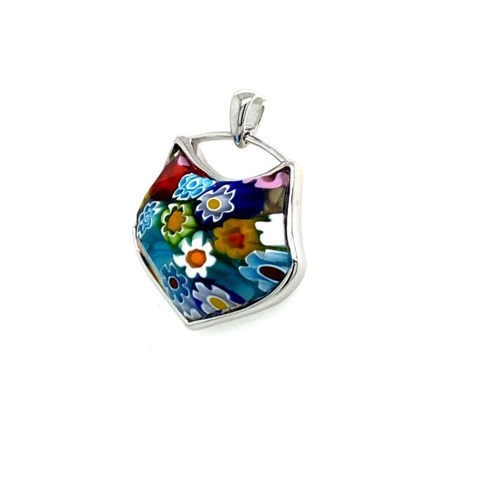 Bezel Set Minimulist Murano Millefiori Cat Head Glass Pendant