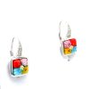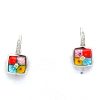 Murano Millefiori Cushion Cut Glass French Back CZ Accent Earrings.