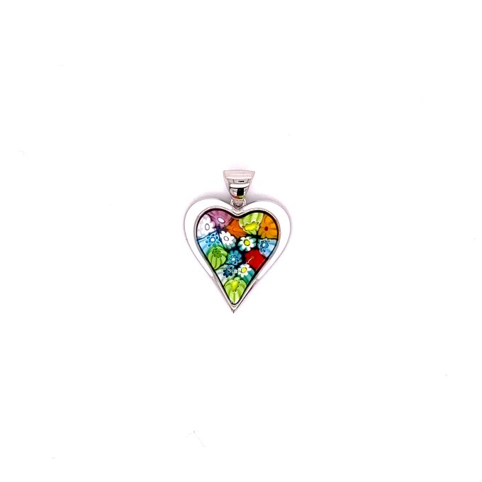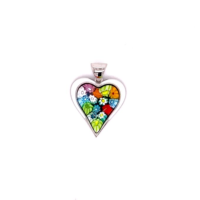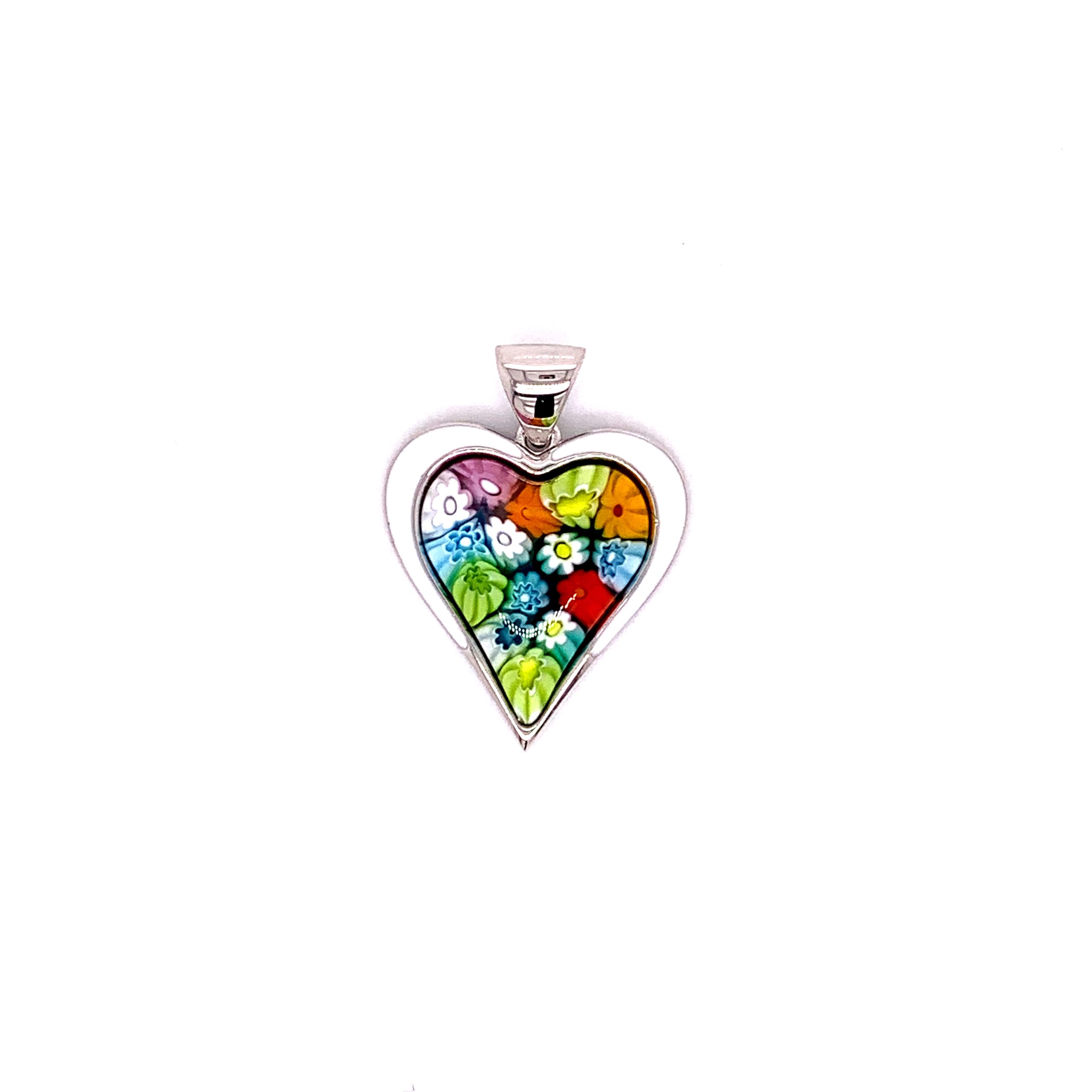Murano Millefiori Heart Shaped Glass And Enamel Pendant.