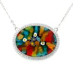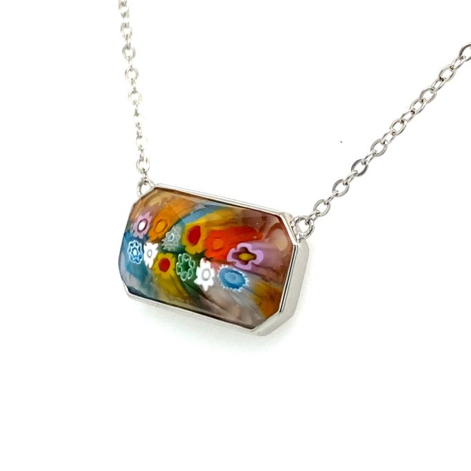 NecklacesBezel Set Multi Color Contemporary Murano Radiant Cut Faceted Multi Colored Glass Necklace