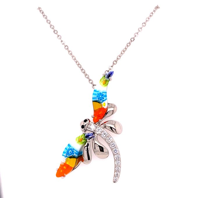 NecklacesMillefiori Multicolor CZ Pave Accents DragonFly Necklace