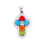 Murano MIllefiori Multi Colored Mirroring Pears Cross Pendant