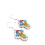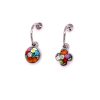 EarringsSemi Hoop Charm Drops Bezel Set CZ Accent Hoop Round/Clover Earrings , With Multi-Color – Multi Millefiori , Cubic Zirconia – Bezel Set