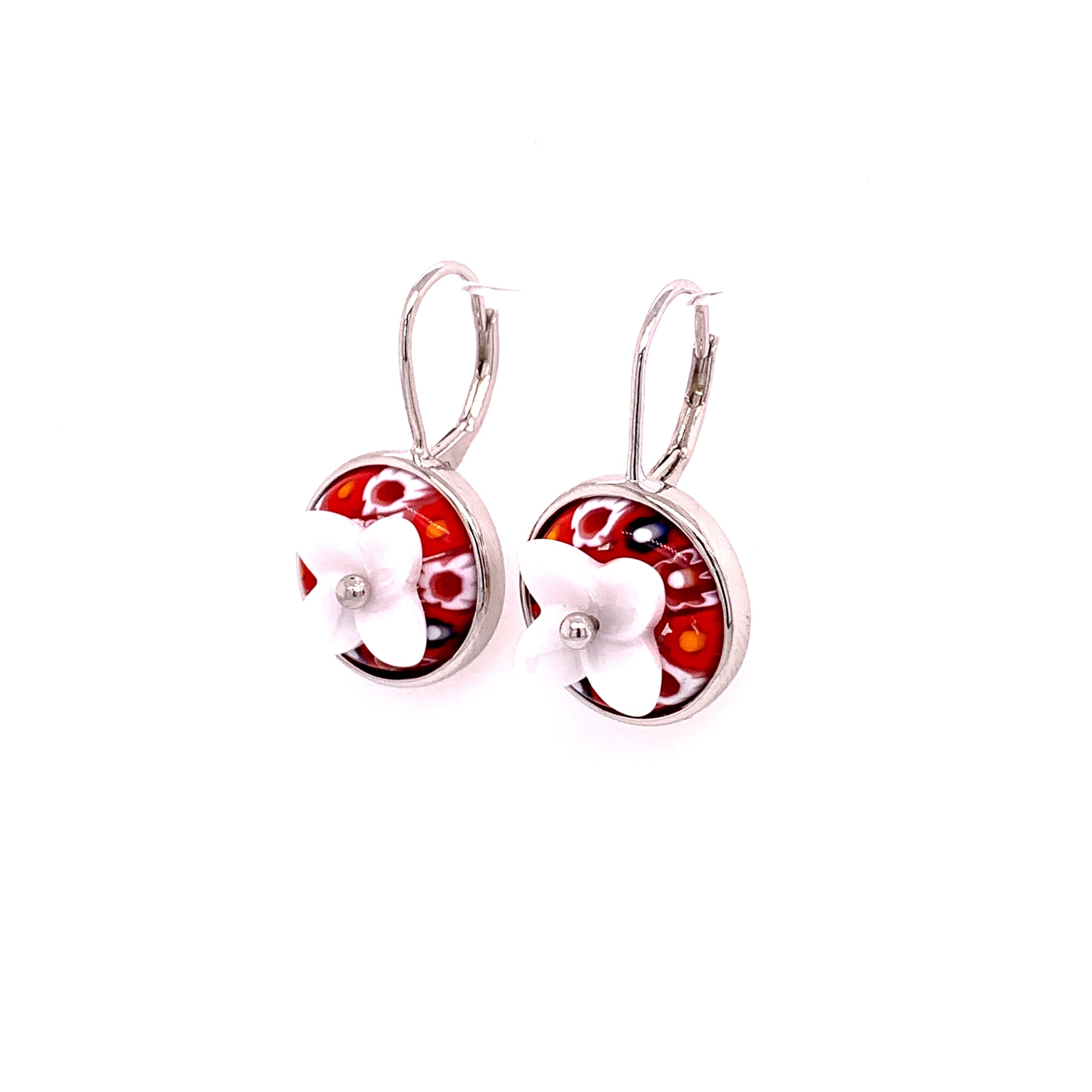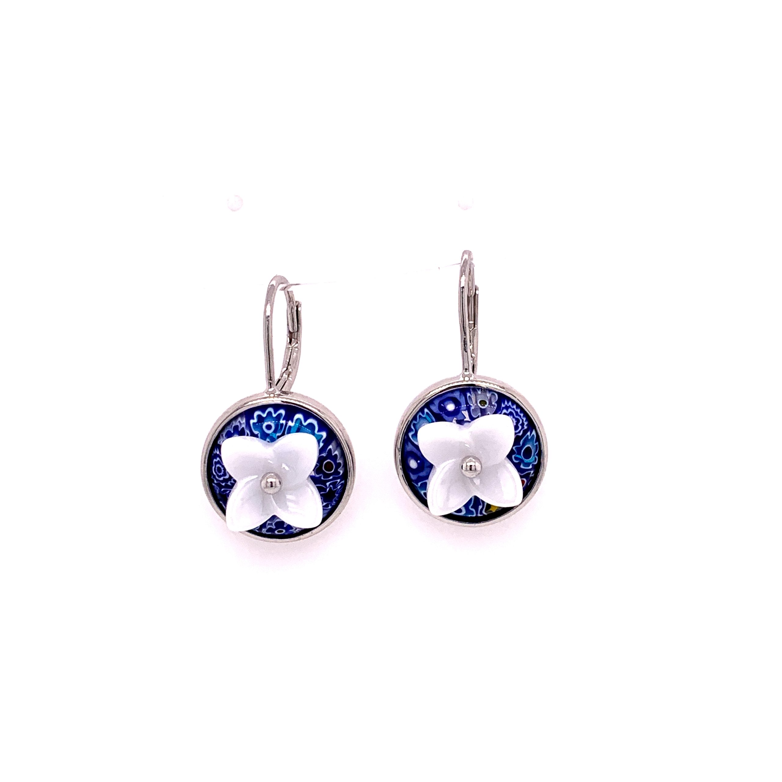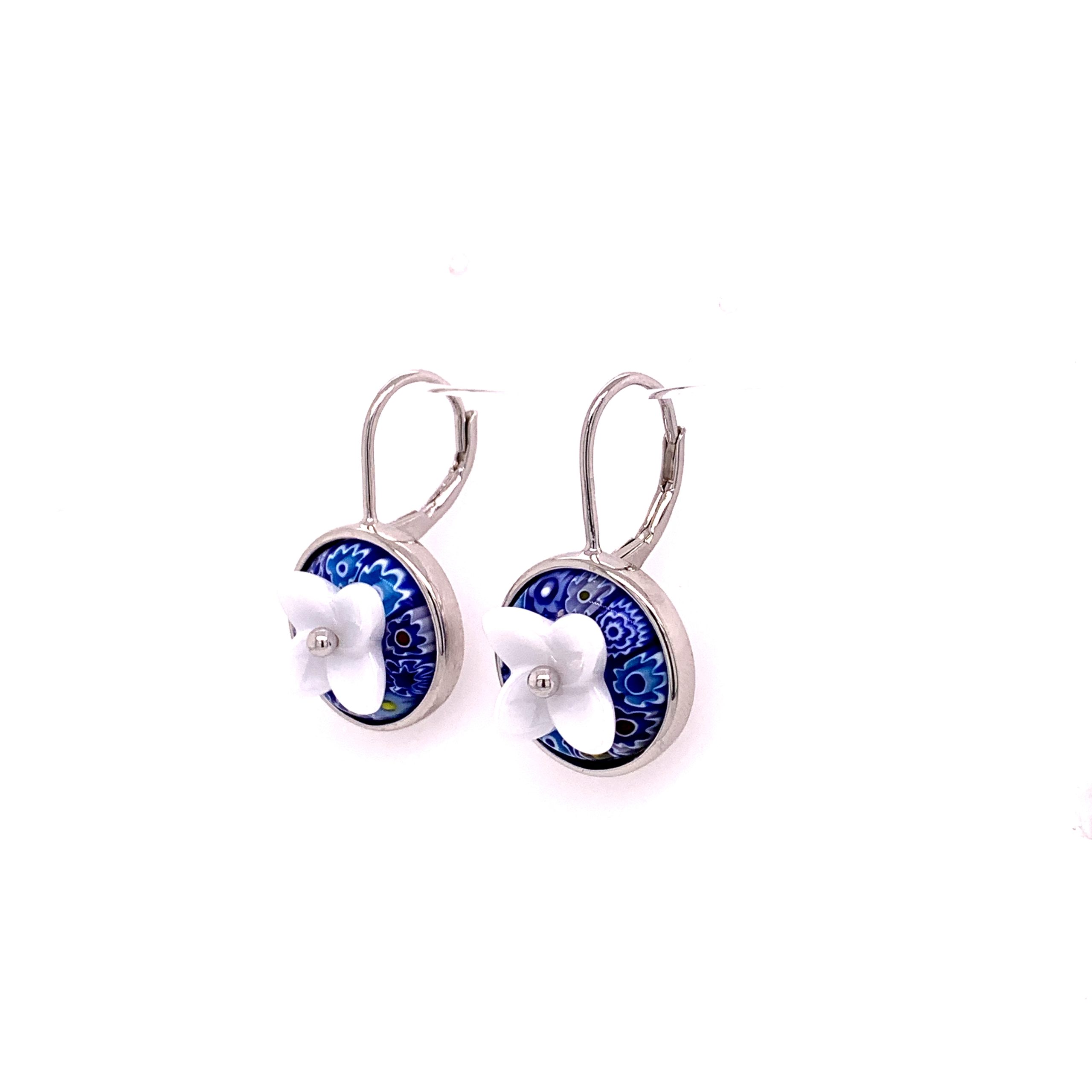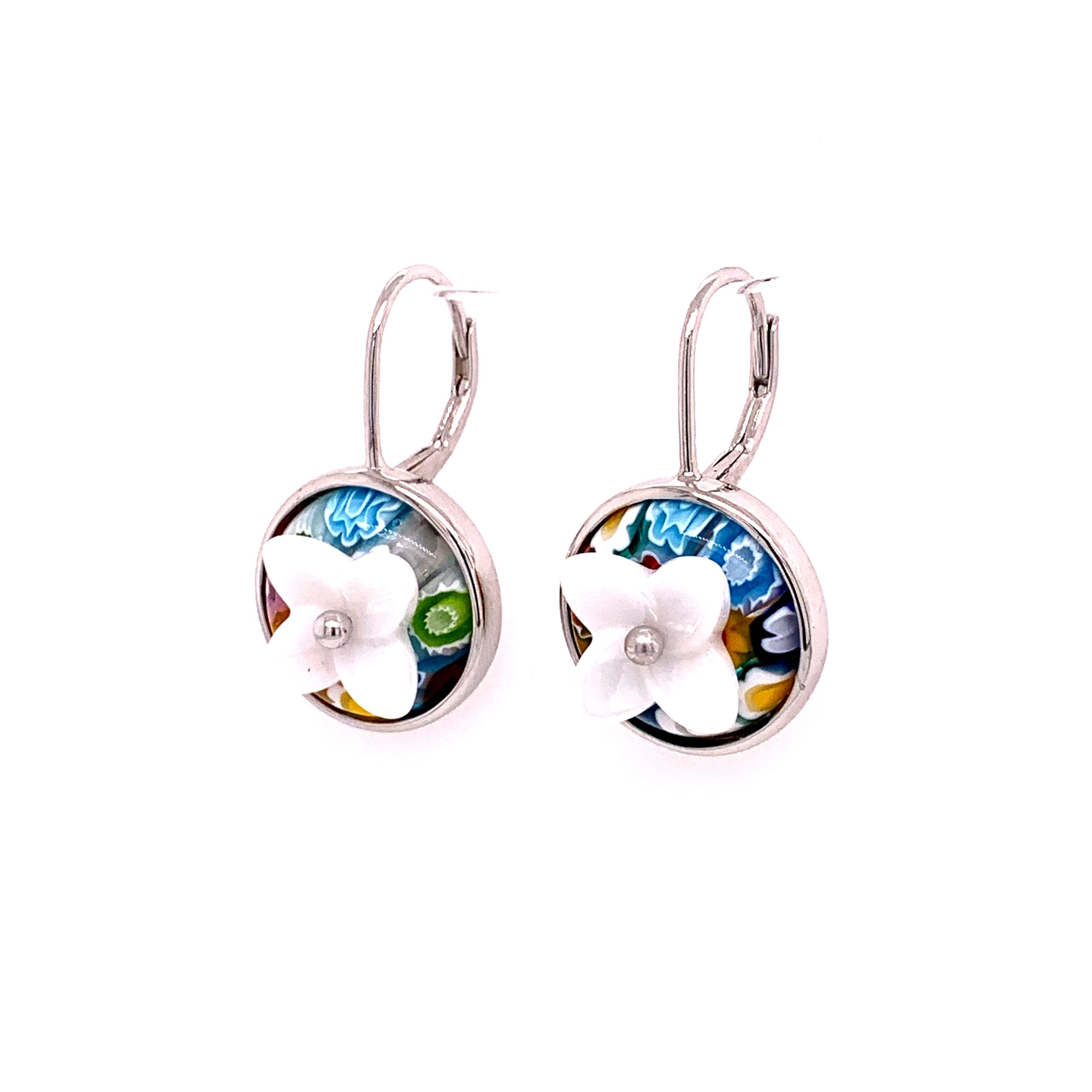 Murano Millefiori Round Glass Onyx Lilly French Back Earrings.
