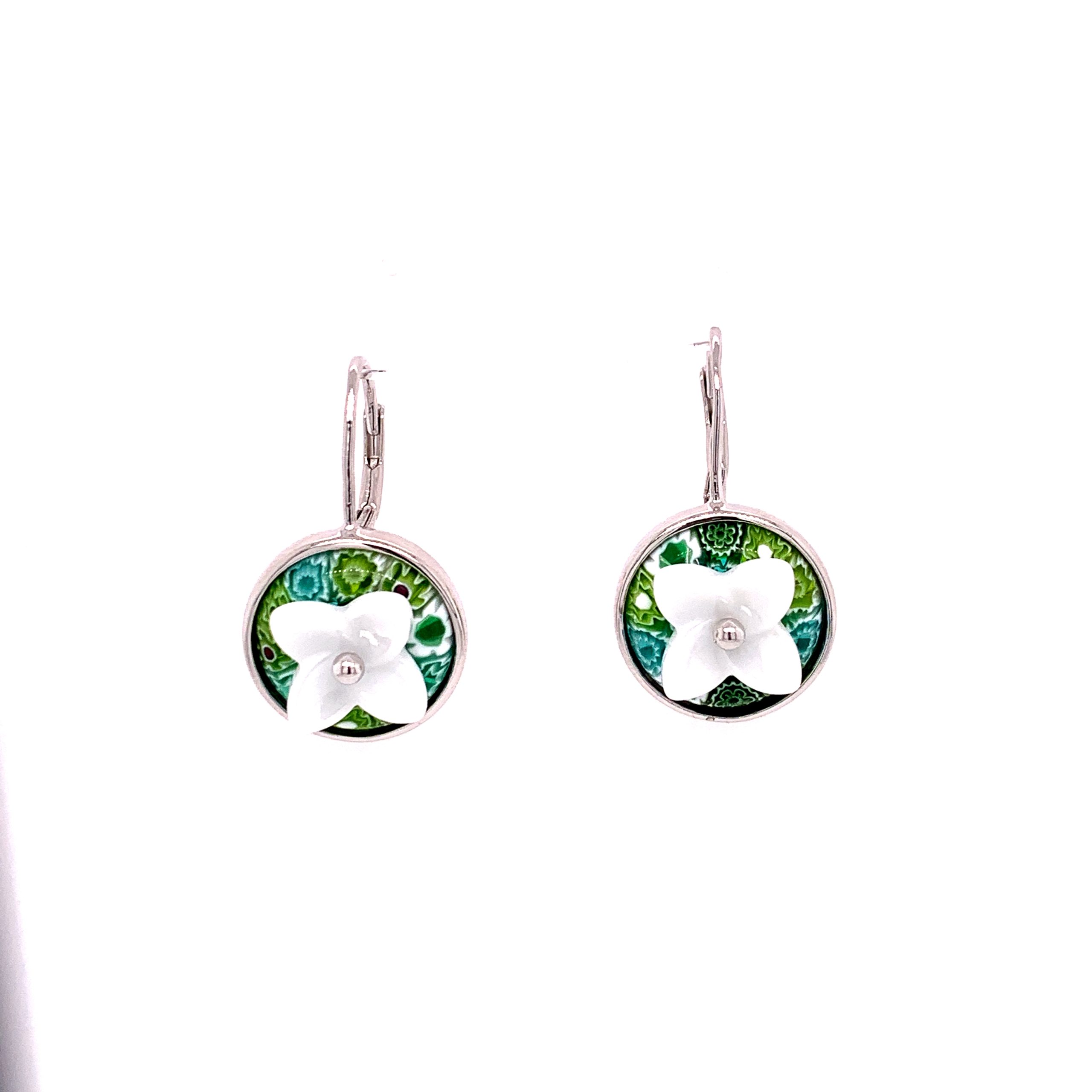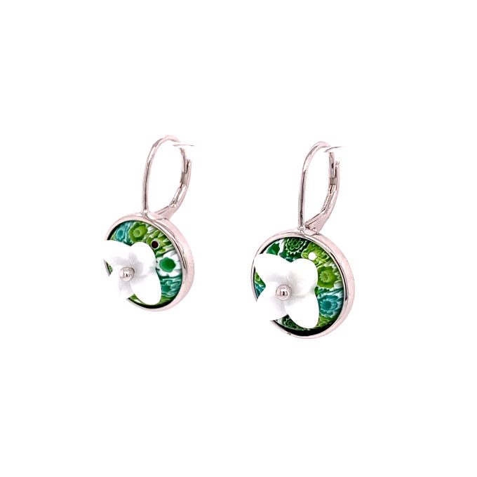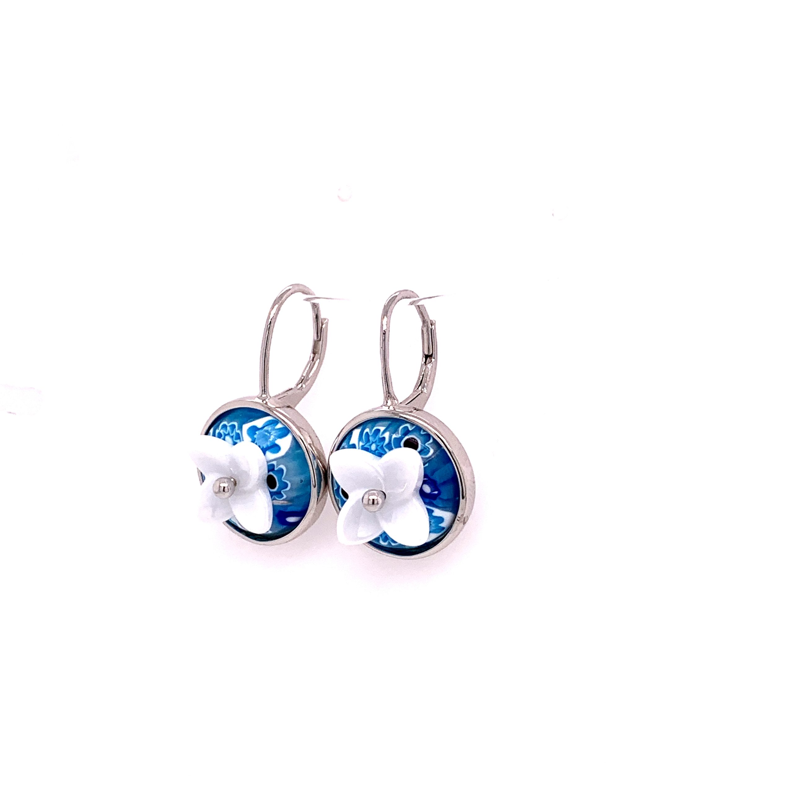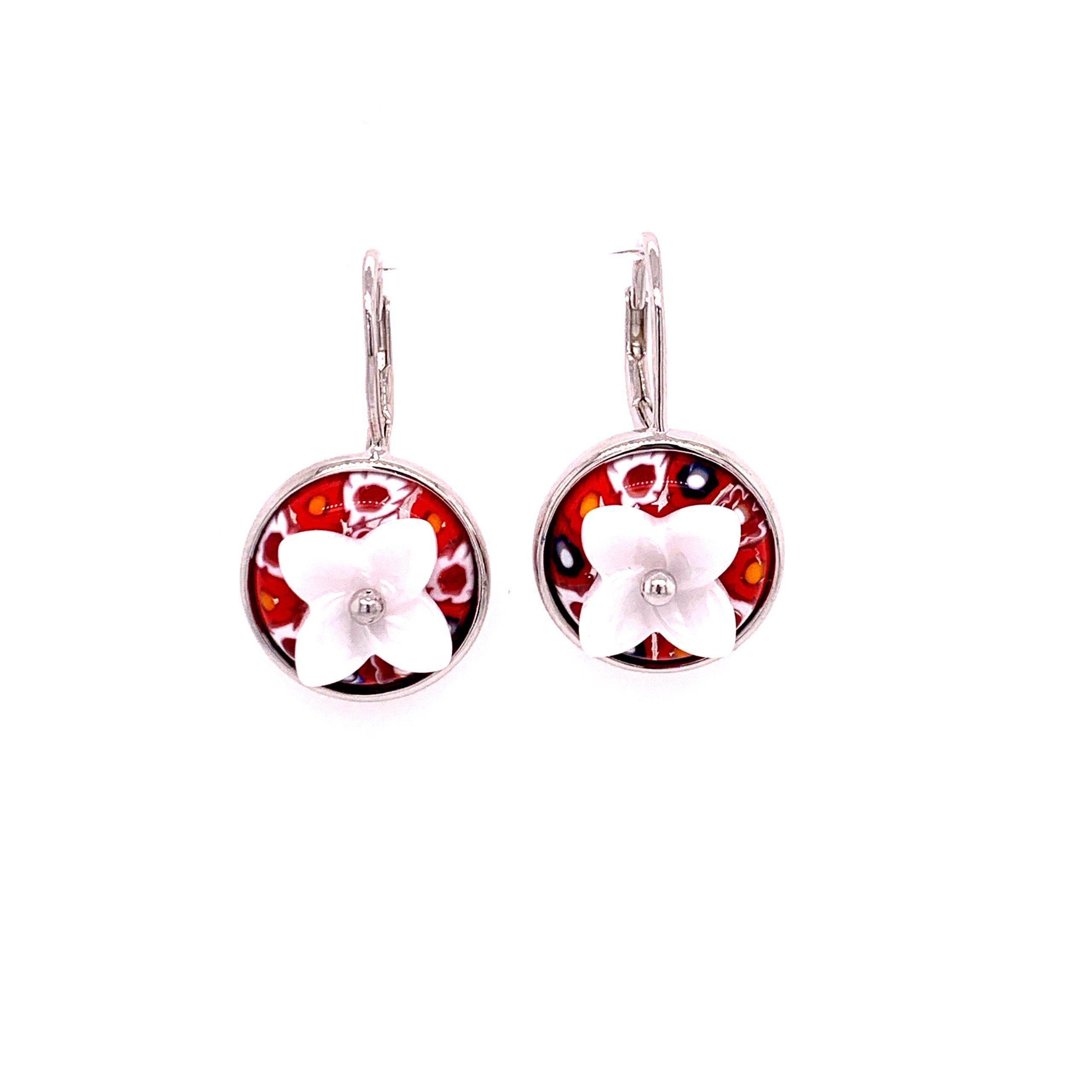 Murano Millefiori Round Glass Onyx Lilly French Back Earrings.