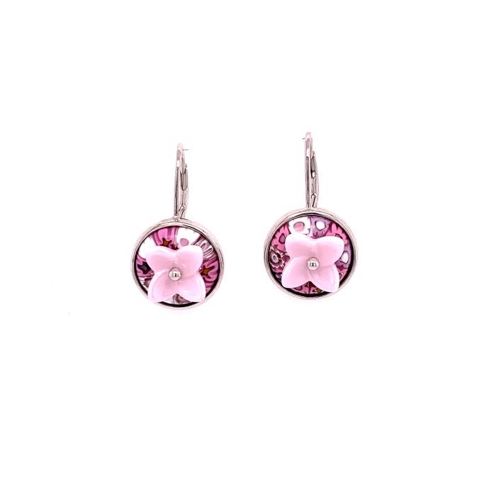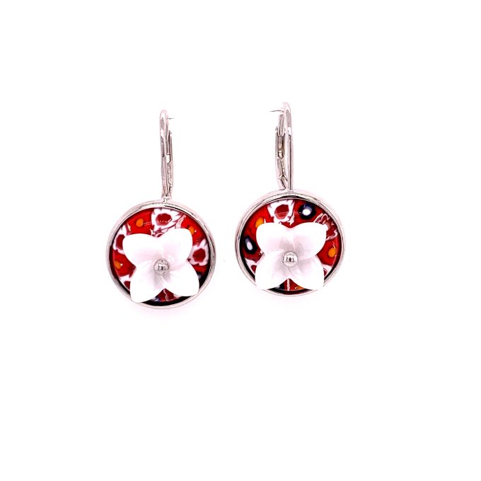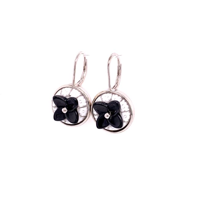 EarringsOnyx Lilly French Back Roundw/ floweer attached Round Murano Glass Earrings