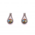 Hand Crafted, Sterling Silver 925 Mounts. Prong Set, Round, Faceted, Murano Millefiori, Multi Colored Glass. Sterling Silver Bead Push Back, Dual Chain Drops.